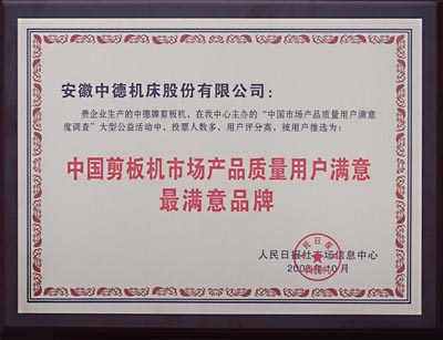 由国青年日报刊社整个市场的信息之间主理、国快运与推销自己依照会、国织造厂第三产业研究会、国工业贸易机械研究会等60多间权力巨子的行业研究会、《工作人员日报》、《科技产业日报》等10家权势巨子报刊、国民网及搜狐网等权势巨子网站协办撑持,为期三个多月的“中国市场品德用户对劲度查问拜访”大型公益勾当终究发表。我公司出产的中德牌剪板机,在本次公益勾当中,投票人数多,用户评分高,被用户推举为:中国有数控剪板机贸易🍸市场化合物道德朋友对劲最对劲知名品牌。